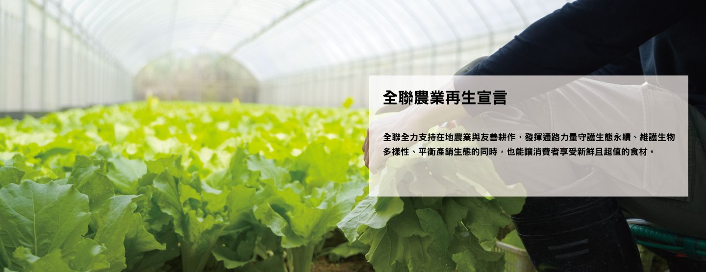 全聯支持在地有機農業發展,推廣不使用化學廢料、基改商品的友善種植,守護生態永續。有機蔬菜經由第三方單位認證嚴格把關品質,透過規模經濟降低成本,讓消費者以合理的價格購買好食材。 全聯有機農業三大永續目標: 1、守護生態永續: 以促進土壤健康、維護生物多樣性為使命,減少土地與農藥接觸的機率,有效保護環境。 2、解決成本問題: 透過計畫銷售、計畫生產的方式,收購優良品質產品,經通路保證收購,提供農民種植就業保障。 3、保障消費者權益: 提供多樣選擇、品質佳,且具有價格優勢的有機農產品,讓消費者能以平實的價格購買有機商品,用行動支持永續農業。