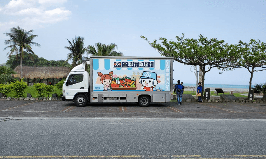 全聯行動超市車深入偏鄉地區,服務在地行動不便老年人或居民,於車上供應民生用品、乾貨、新鮮蔬果與魚肉等約300至400項應有盡有的平價商品,超市車體採用航太工業材質打造,裝入6.5噸三溫層(常溫、冷藏、冷凍)車體,確保交到民眾手上之商品依然保持新鮮、高品質,隨車配1名司機與店員,提升偏鄉消費者購物之方便性。目前共計4台行動超市車,於花蓮美崙、嘉義中埔、新竹與屏東持續提供更多貼心、富有人情味的服務。