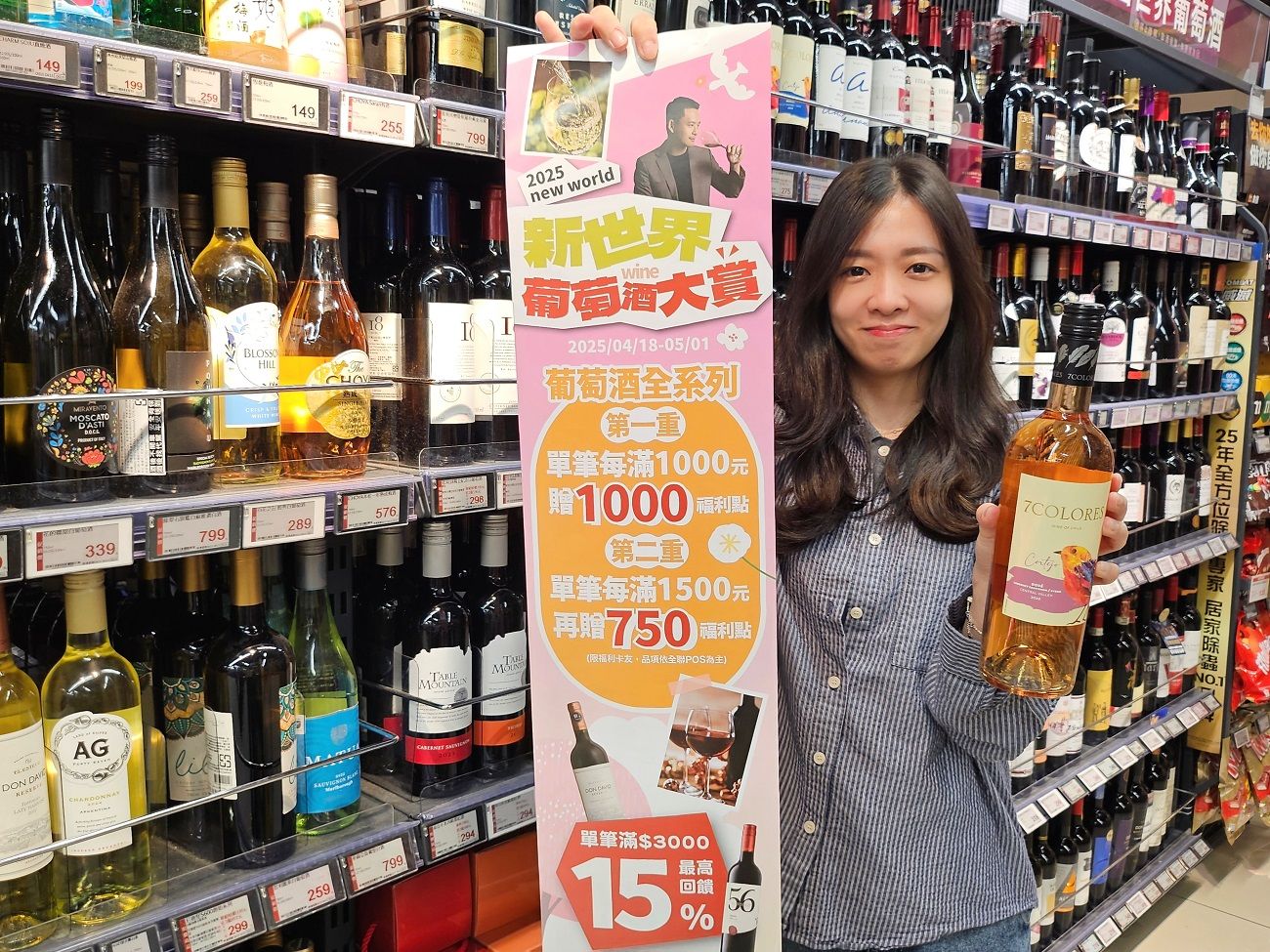 大潤發「春遊佳釀」則主推四款舊世界葡萄酒,迎接夏季到來,最適合夏天的清爽酒款「義大利羅卡灰皮諾白葡萄酒」搭配涼拌海鮮都很適合,4/18~5/15每瓶200元有找,只要199元;喜歡稍甜的酒款則推薦「義大利普利亞微甜白葡萄酒」,帶有蜂蜜柑橘味,4/18~5/15每瓶379元;「法國勃艮地卡多萊加美紅酒」則是清爽型紅酒,適合日常佐餐,4/18~5/15每瓶499元;若想嘗試波爾多酒款,則推薦入門款「法國波爾多格拉夫達斯堡紅酒」不論單喝或搭配肉類、起司都很百搭,4/18~5/15每瓶469元。