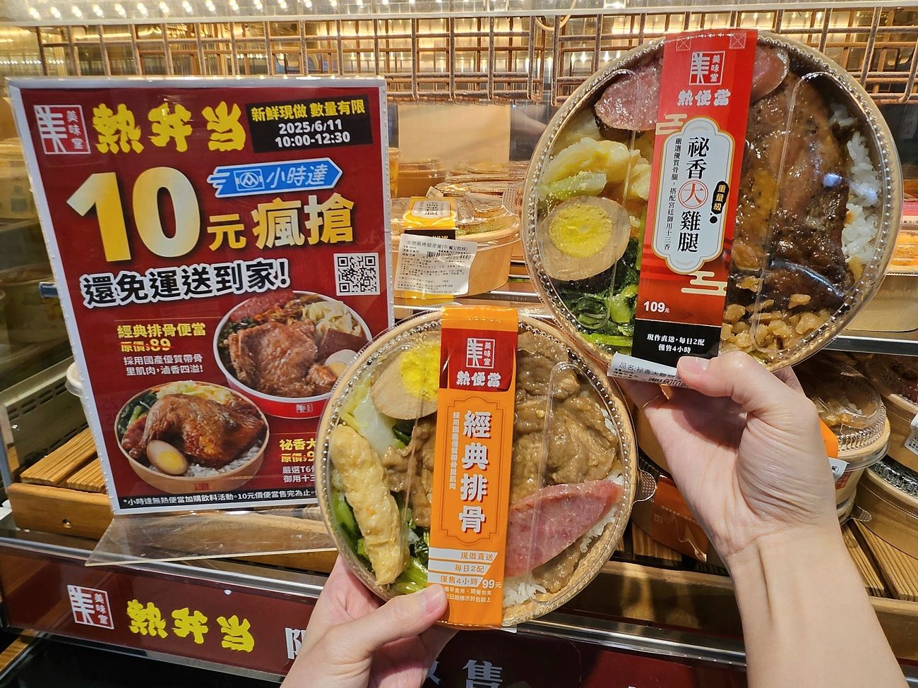 迎接「美味食堂」開站,小時達強勢祭出「10元便當」限時搶購,6/11上午10:00至12:30美味堂超人氣「經典排骨便當」、「秘香大雞腿便當」下殺只要10元,新鮮現做、數量有限,手刀開搶、賣完為止!此外,即日起至6/19前,凡購買指定熟食商品單筆滿99元即享整單免運,成功下單還有機會抽中1,000元買菜金。