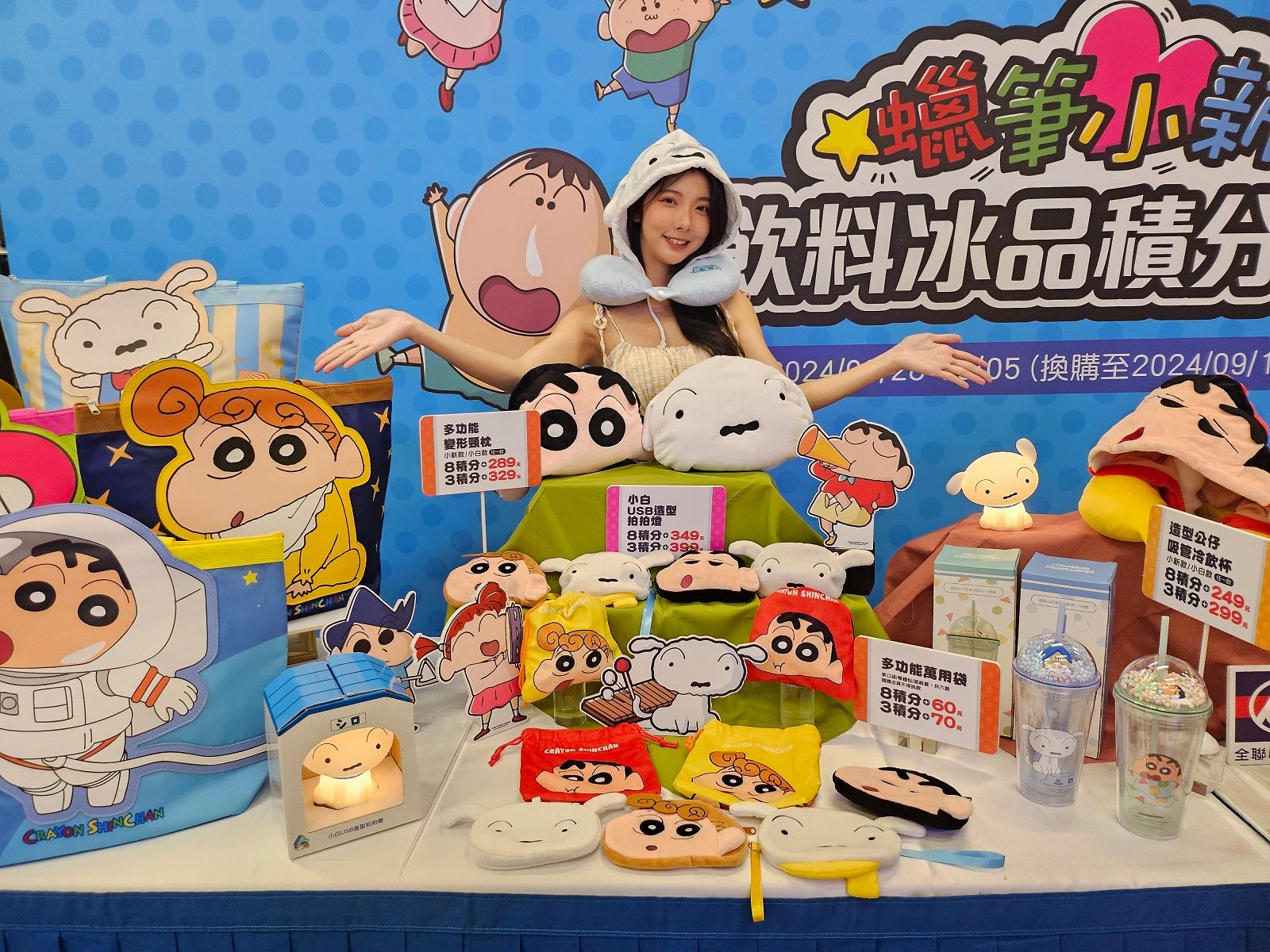 蠟筆小新鐵粉快看!全聯飲料冰品積分樂開跑 小新頸枕、小白拍拍燈必收 超夯冰品、飲料買1送1