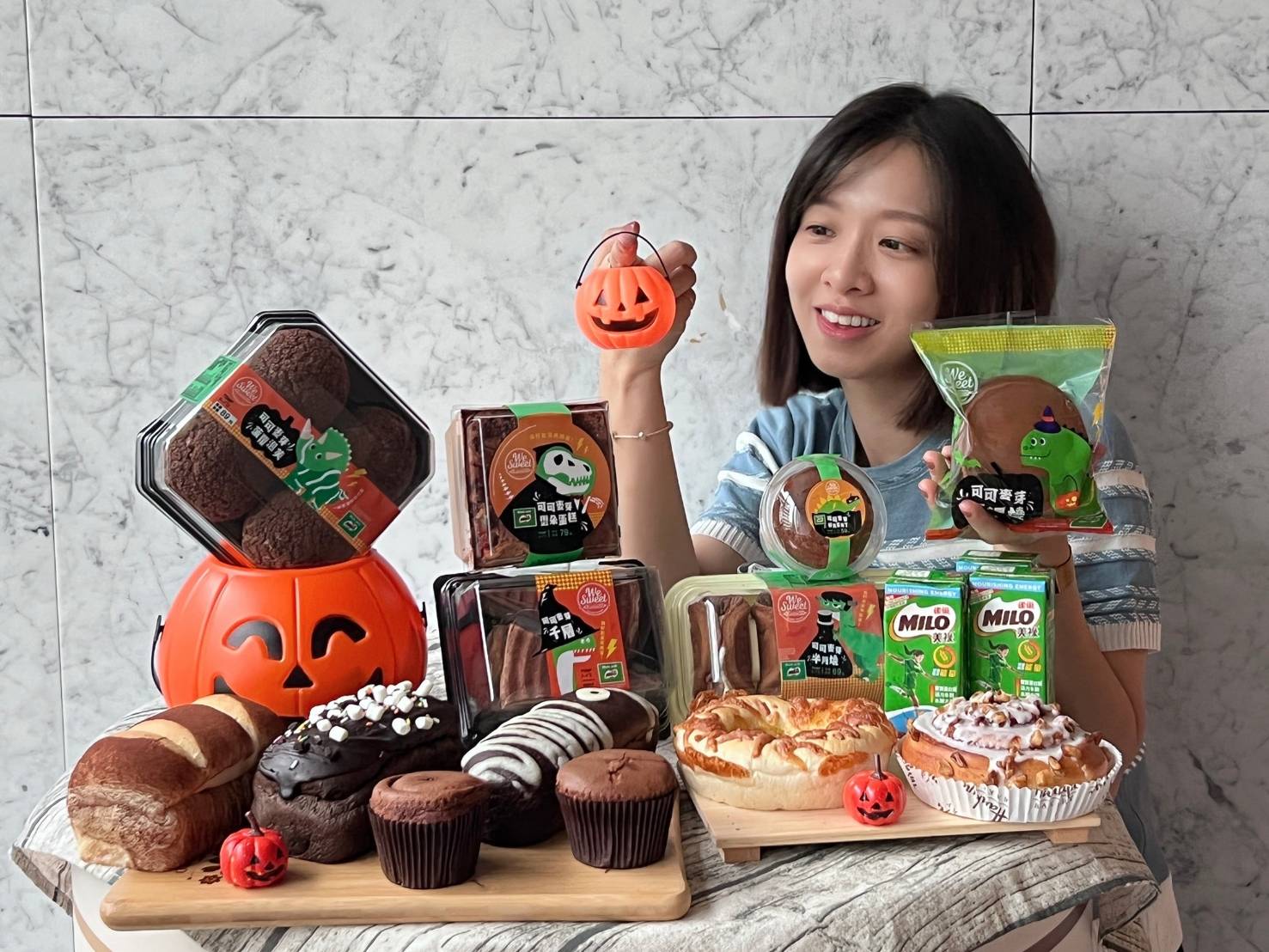 搶搭萬聖節的歡樂氣氛,We Sweet和美祿聯名推出7款新品,囊括千層蛋糕、雲朵蛋糕、舒芙蕾布丁、泡芙到半月燒、銅鑼燒、杯子蛋糕等,以各款甜點的豐富口感滿足甜點控,包裝也換上美祿招牌恐龍,加入萬聖節元素,更添過節氣氛。推薦「可可麥芽千層」,有著恐龍齒造型,撒上美祿巧克力粉,美祿巧克力麥芽香緹內餡搭配厚薄一致的可可薄餅皮,細緻絲滑;「可可麥芽銅鑼燒」猶如濃縮的美祿飲,並以美祿餅皮、美祿奶霜、美祿醬呈現美祿三重口感;「可可麥芽杯子蛋糕」注入特調美祿奶霜,化口性佳。