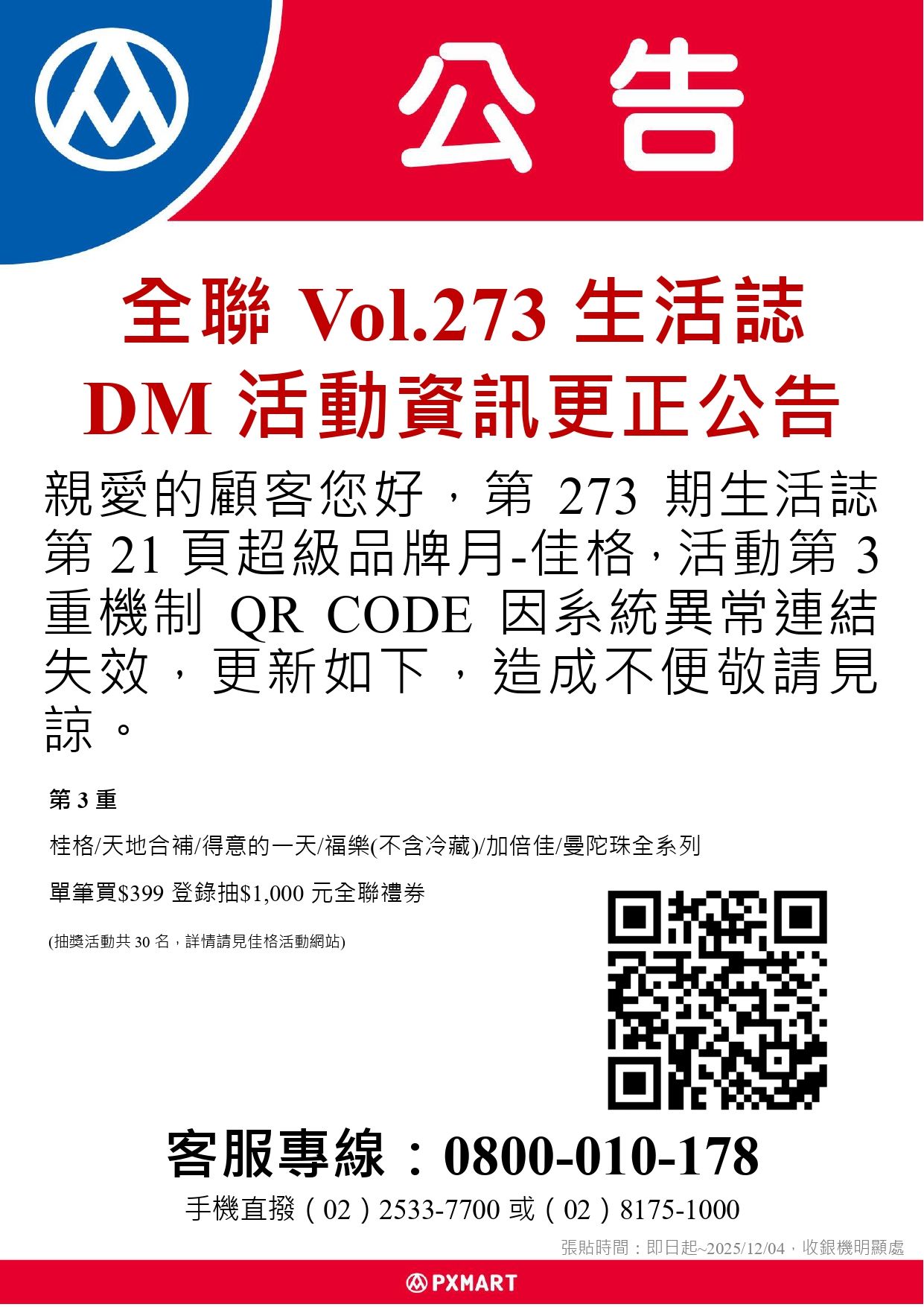 【公告】全聯273期生活誌-活動資訊更正公告