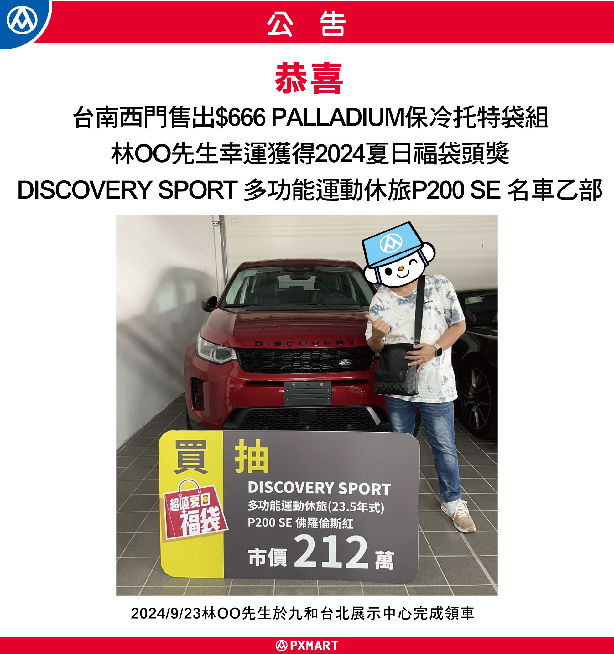 【公告】2024夏日福袋頭獎DISCOVERY SPORT P200 SE領車