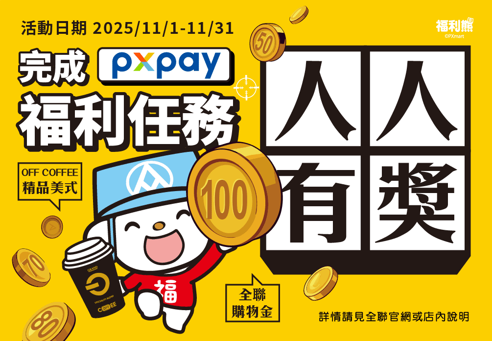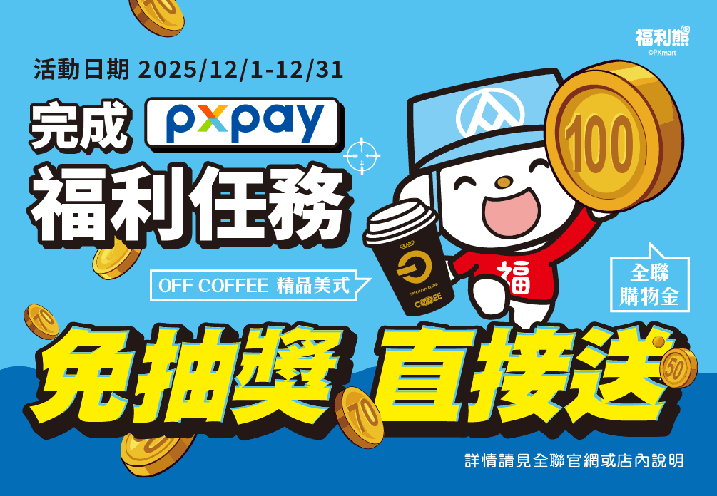 領獎方式:主辦單位將進行得獎資格檢核後,於2025/12/20前匯入得獎者之PX Pay帳號(9999開頭福利卡)內。