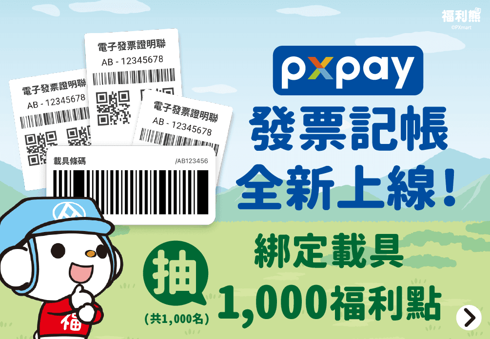 活動辦法:活動期間至PX Pay APP發票記帳功能,綁定手機條碼即可於綁定當月參加抽獎活動,