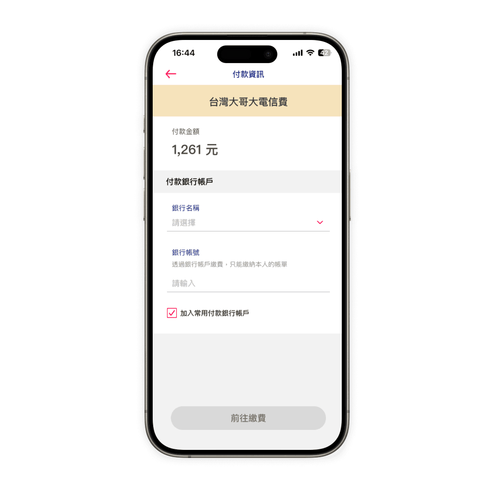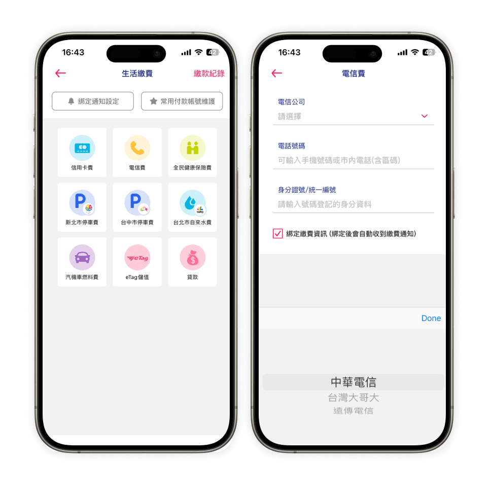 選擇欲繳納的帳單類型並填寫資料
