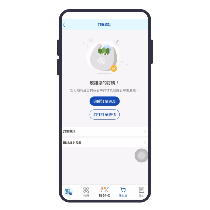 完成付款,訂購成功