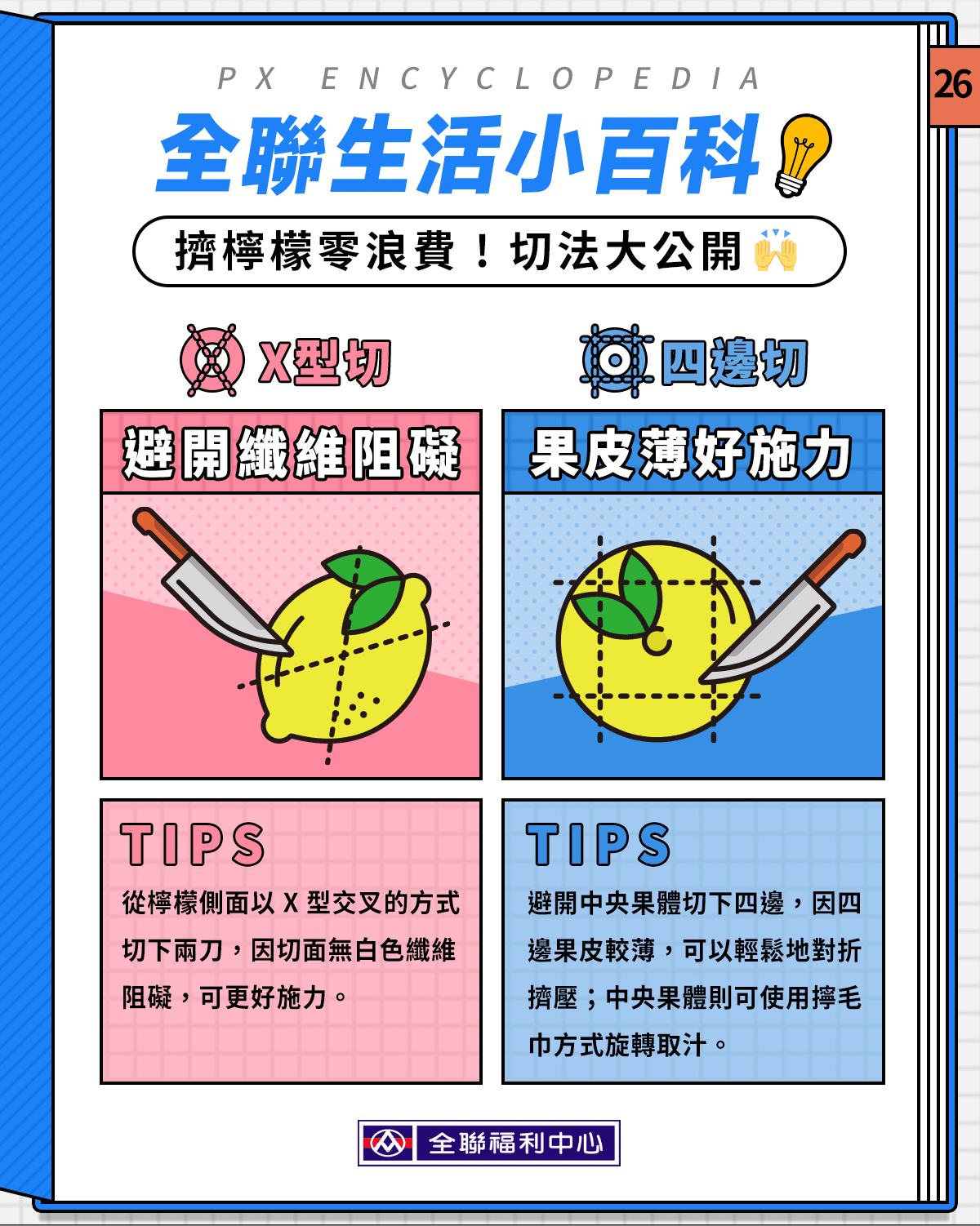【#全聯生活小百科:擠檸檬零浪費 ! 切法大公開 】