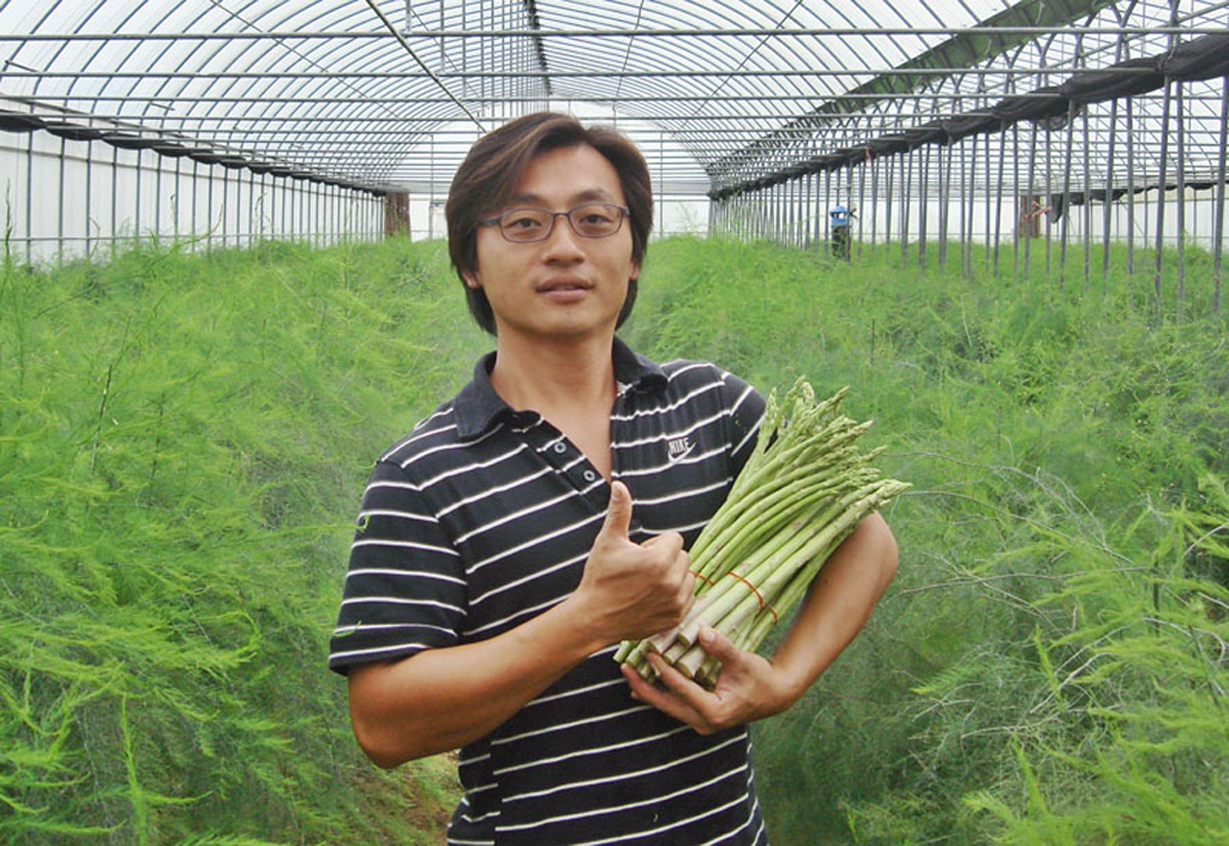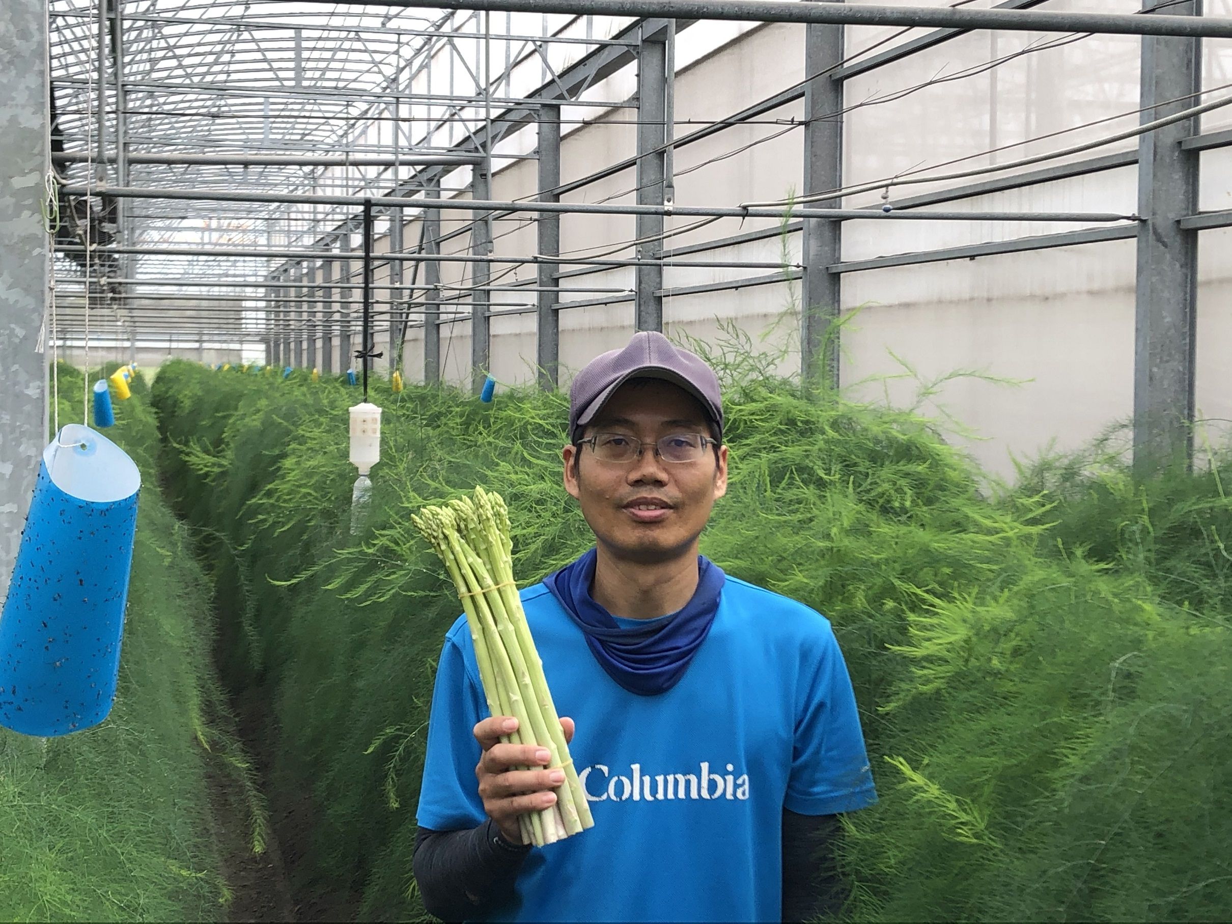 黃志偉的綠蘆筍溫室,映入眼簾的是井井有條的格局規劃、科技化的灌溉系統,綠蘆筍就在這個溫度適中的環境下靜謐地生長,不論是初冒筍頭的幼株,或是成長到可以採收的長度,在在顯示得到充分照顧的綠蘆筍飛快成長、生機盎然的模樣。
