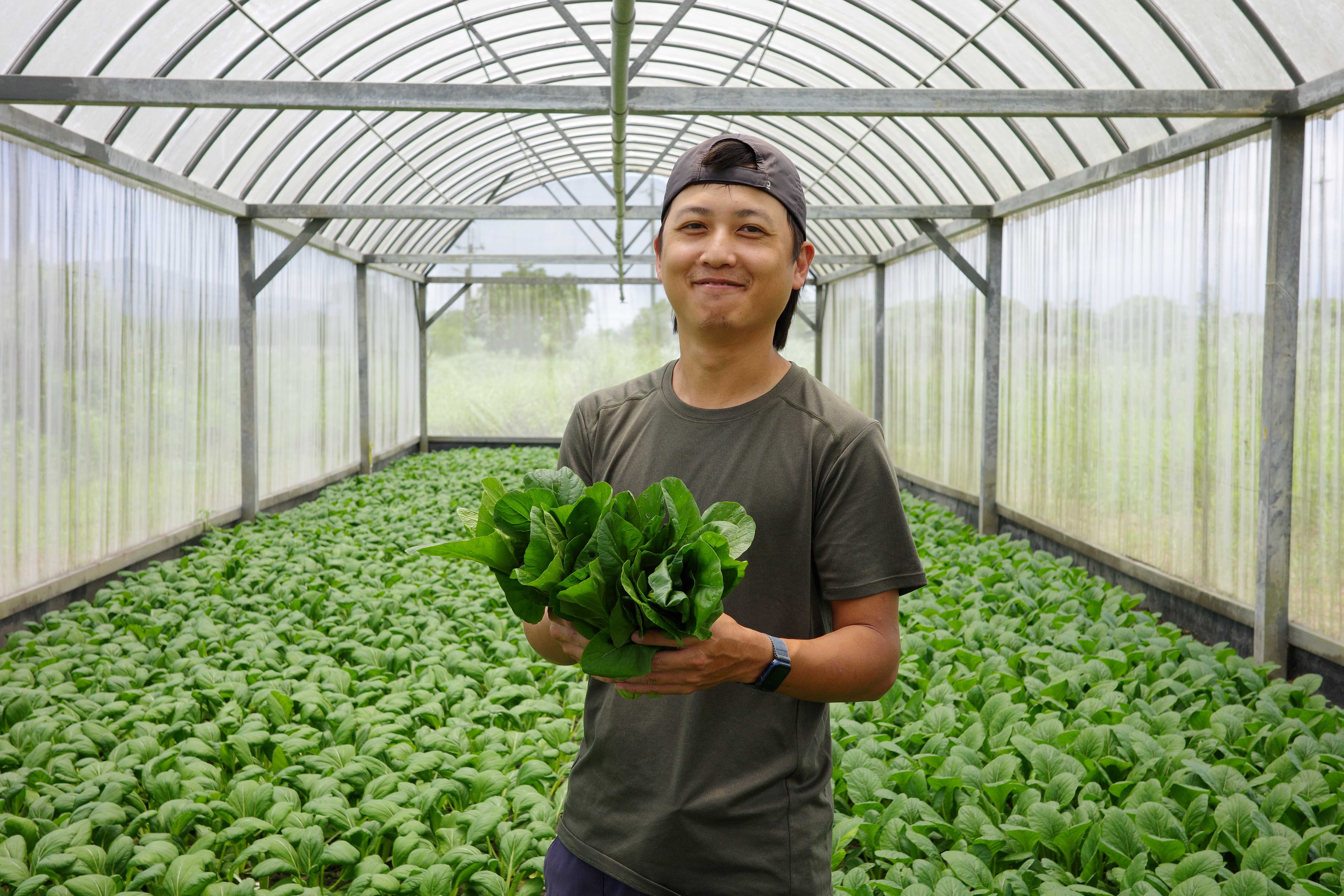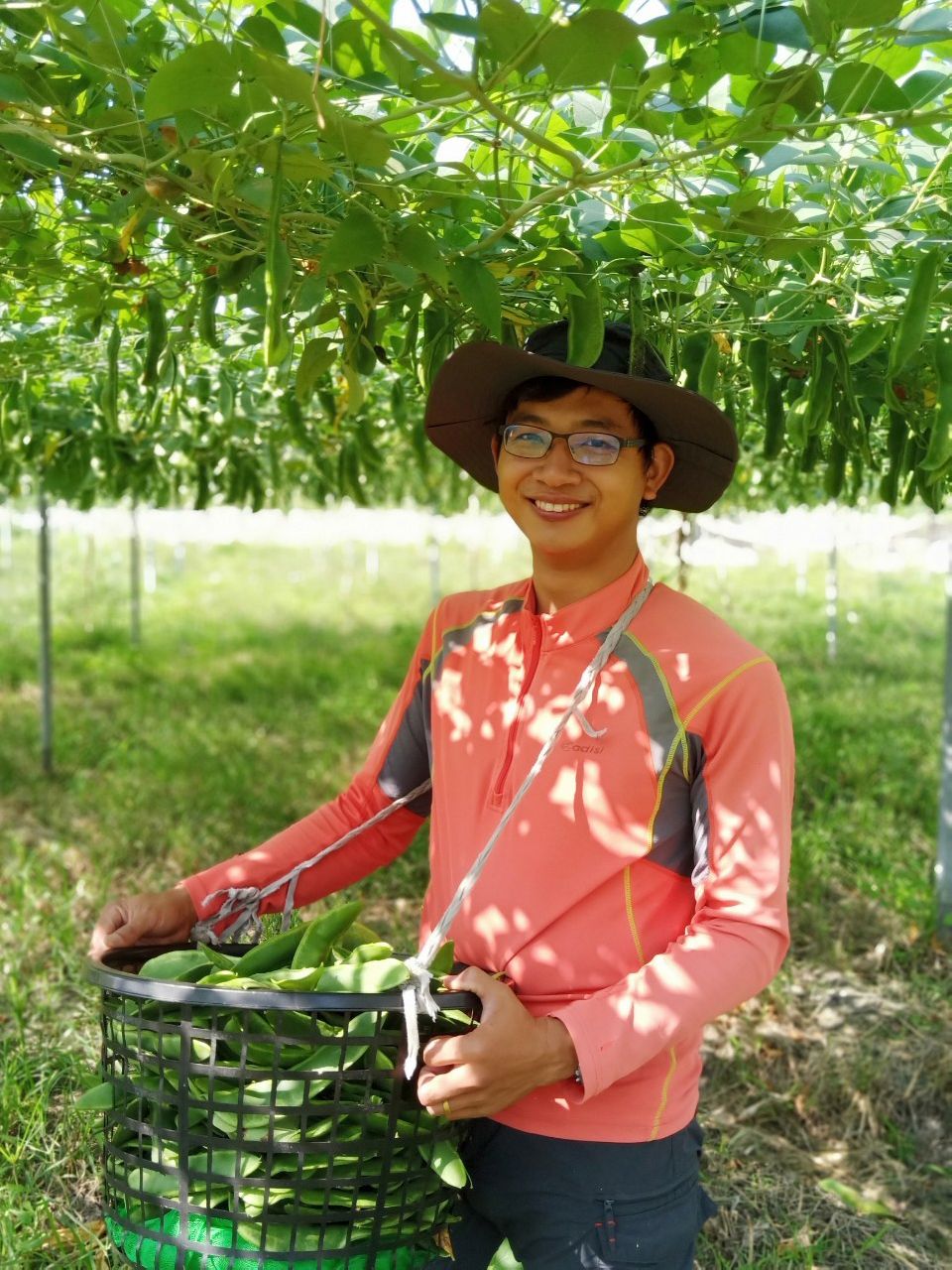 1990年出生的梁力仁今年才33歲,但卻已經有超過10年的種植,經驗,他將學問實踐在他的秋葵田與百香果園,友善土地、不用化學農藥種出美味的作物。與多數青農不同梁力仁並非農二代,因為興趣使然,不僅選讀中興大學農藝系,下田耕種後發現自己所學不足,再攻讀台大植醫學程,後通過考試派駐至地方農會當植物醫師,在種種「行醫」的過程中,梁力仁累積豐富的實務經驗,讓他在日後種植農作物時,都能找出更有效且友善的病蟲害防治方法。
