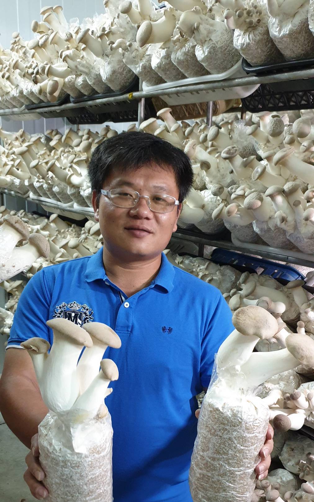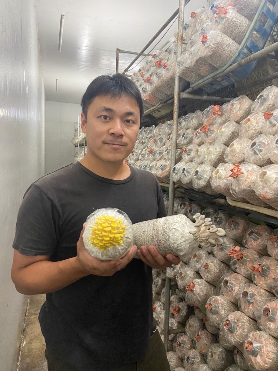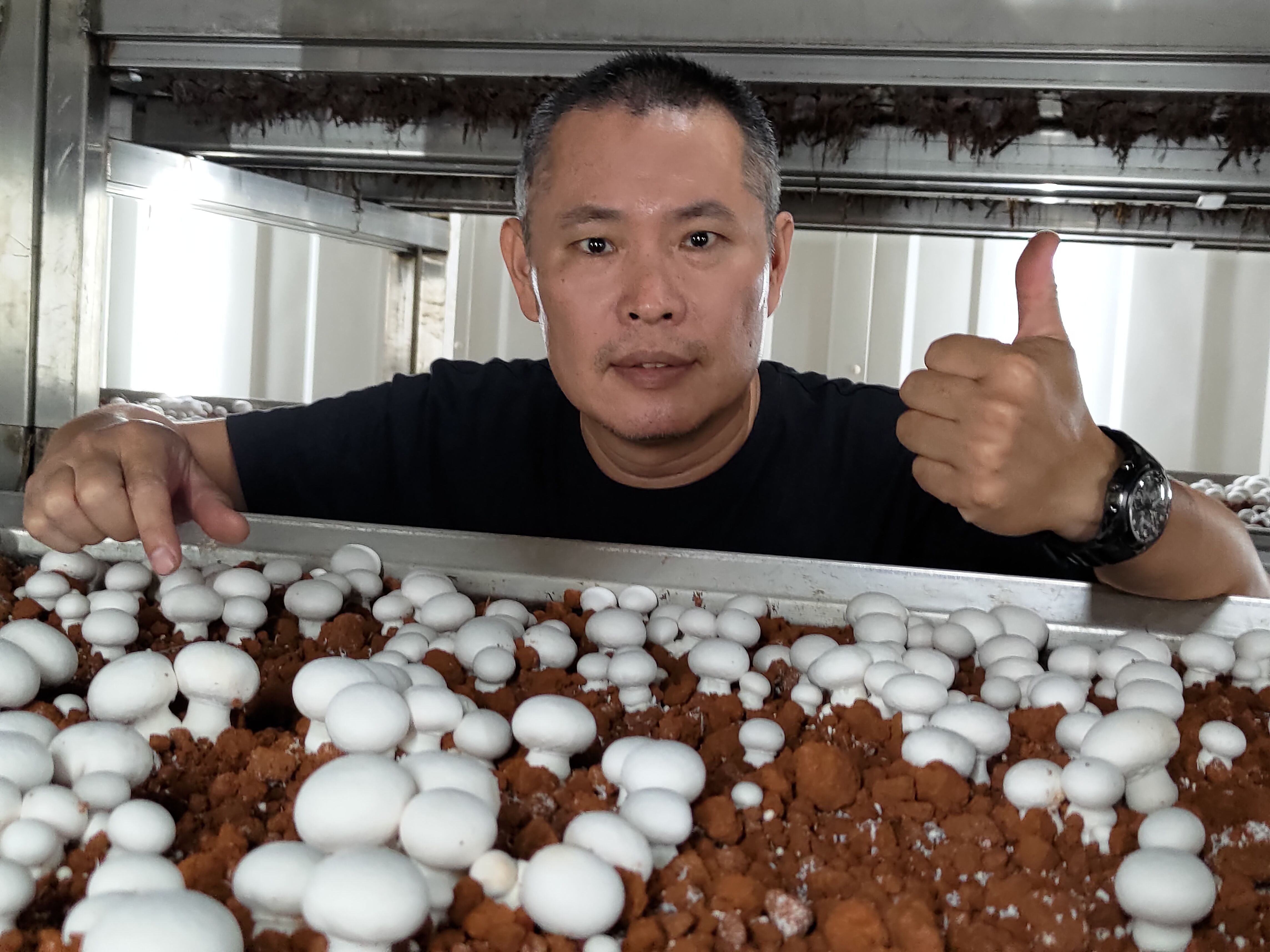 「以前我每天平均講話時間超過8小時,現在每天面對洋菇、土壤,不需要隻字片語,心情卻很愉快。」畢業後,擔任教科書出版社業務的鄭玉豐坦言,雖然業務收入不錯,但在少子化的與競爭激烈的雙重夾擊下,他擔心可能遭遇中年失業問題。剛巧家中在大溪有空地,而岳父母家栽種秀珍菇,於是興起當小農的念頭,幾經評估他決定朝種洋菇發展。