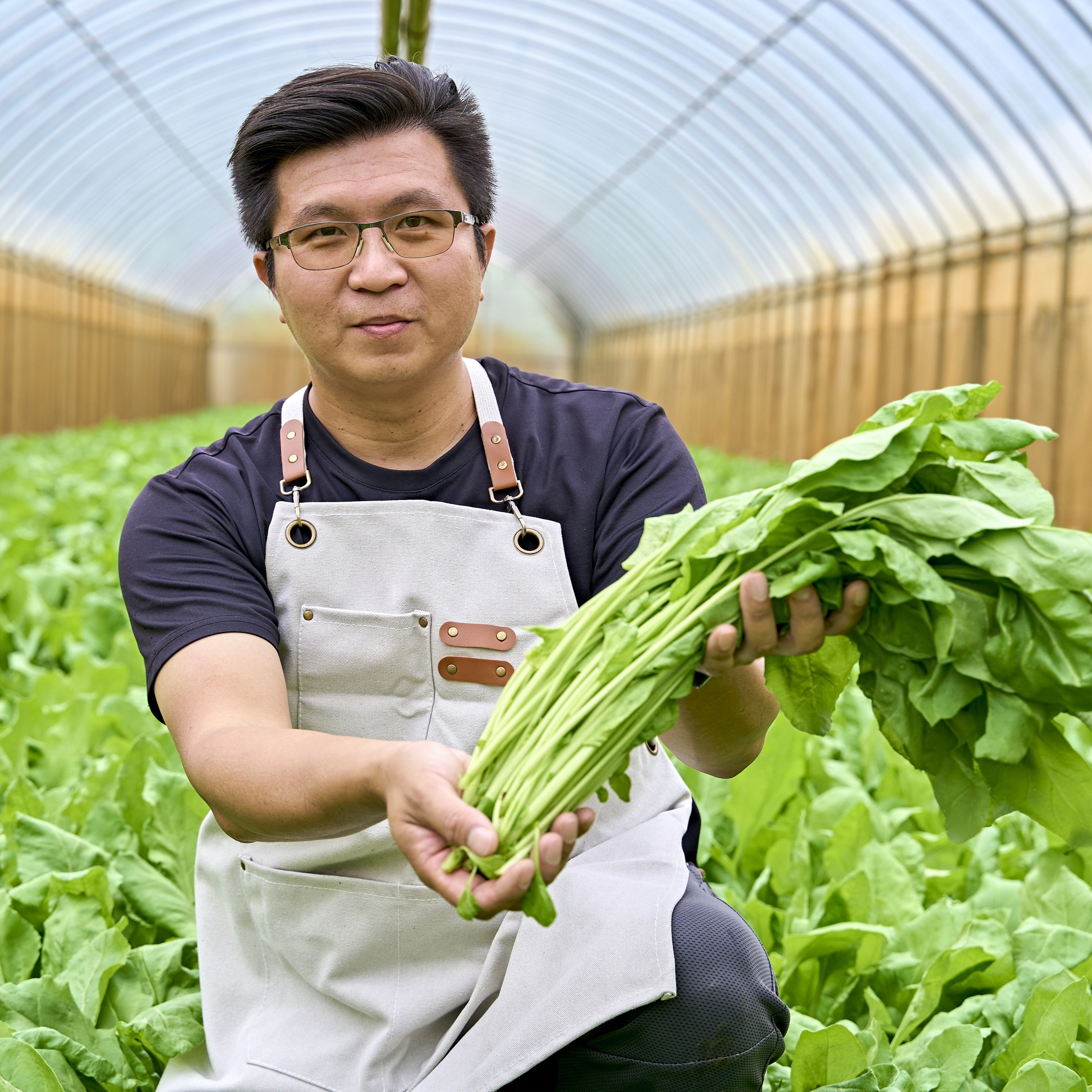 跟隨父親腳步踏入有機農業生產事業已有十二年,綠色大地有機農場與全聯四百多間農家直採門市,合作銷售二十餘種有機葉菜類農產造福廣大顧客,一年四季都能吃到健康安全美味的多樣有機蔬菜。