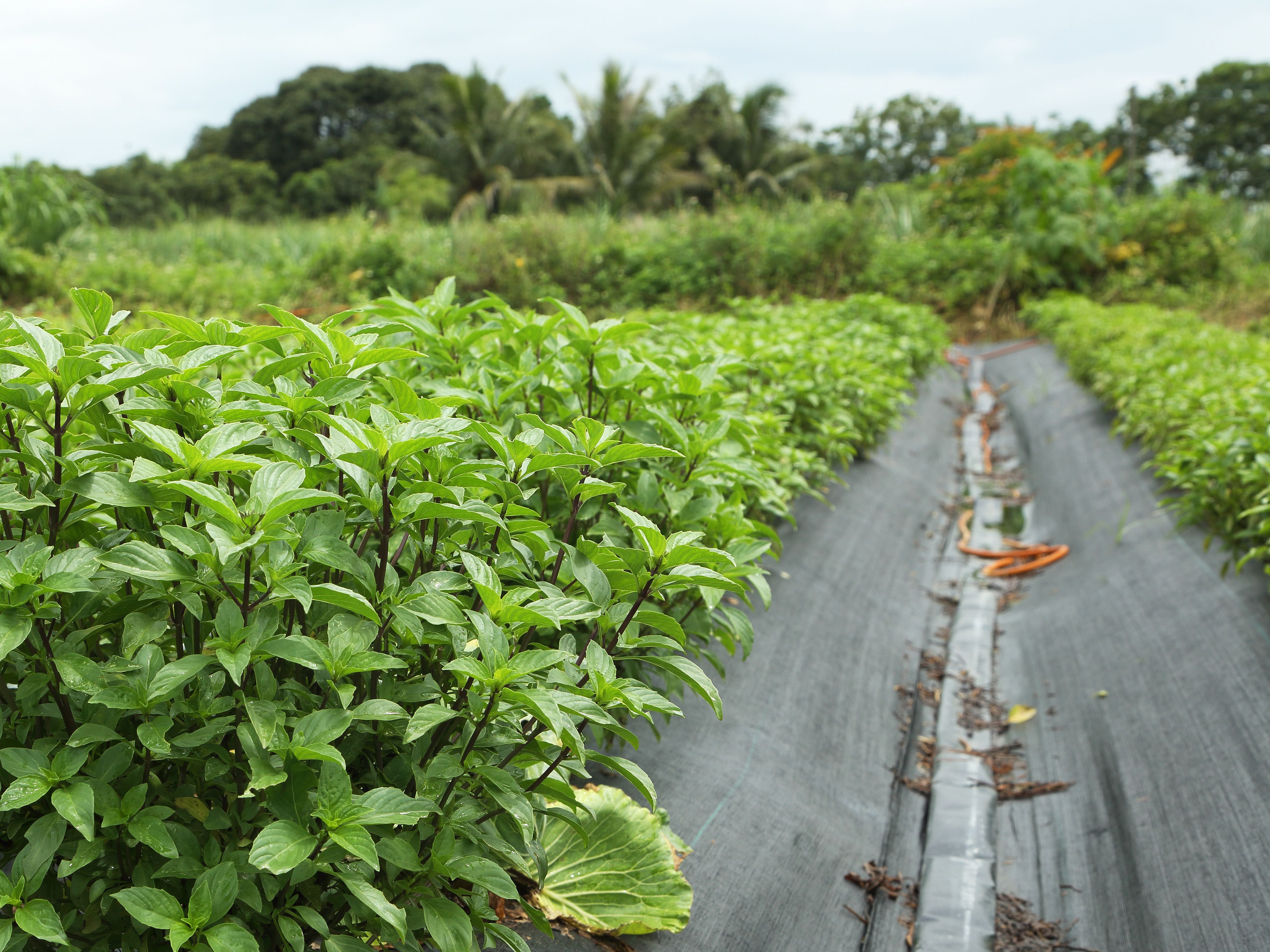 台南大內「忘塵農稼」有機農園種植的蔬菜,因為採露天種植,有充足陽光行光合作用,種出的有機九層塔香氣濃厚,適合搭配,各類食材一起料理;有機皇宮菜的葉片深綠肥厚,且富含植物膠質,口感濃郁滑口。