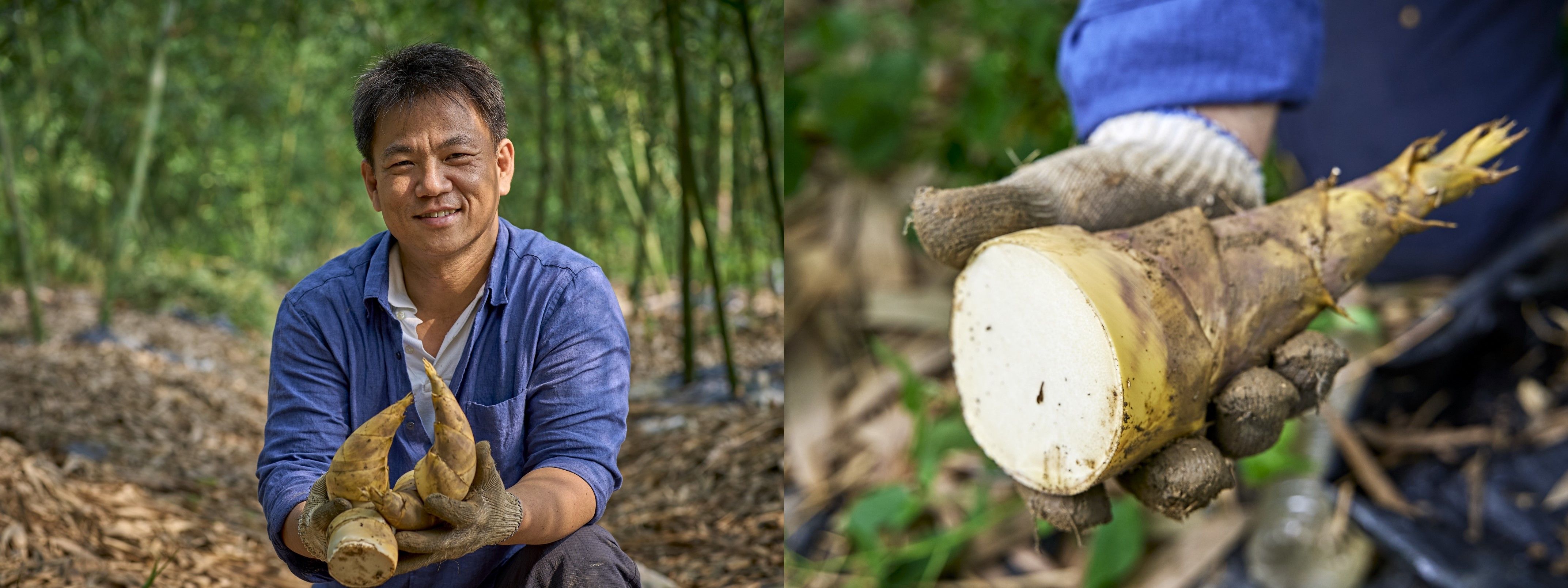 為提供消費者更多安心溯源的農產品,全聯開闢農家直採專區,讓有護土概念的農友有展演舞台,恰巧汶勳參加招商說明會,覺得農家直採方案條件很不錯,且符合自己理念。合作多年,品牌知名度逐漸打開。消費者指定買自己的產品,責任相對更重。為了提供好品質的筍,透早採收、接著清洗、整修、預冷、包裝後,3小時內交付貨運。 烏殼綠竹筍外形呈牛角型,筍肉白的較嫩,外殼若綠了可能會苦澀,竹筍必須低溫才能保持口感,他建議,買回家後就立刻烹煮,料理方式多元,煮湯、炒肉絲,和肉一起滷,筍和肉的味道都升級,又或是煮熟切成條狀,外層包覆培根、下鍋煎。