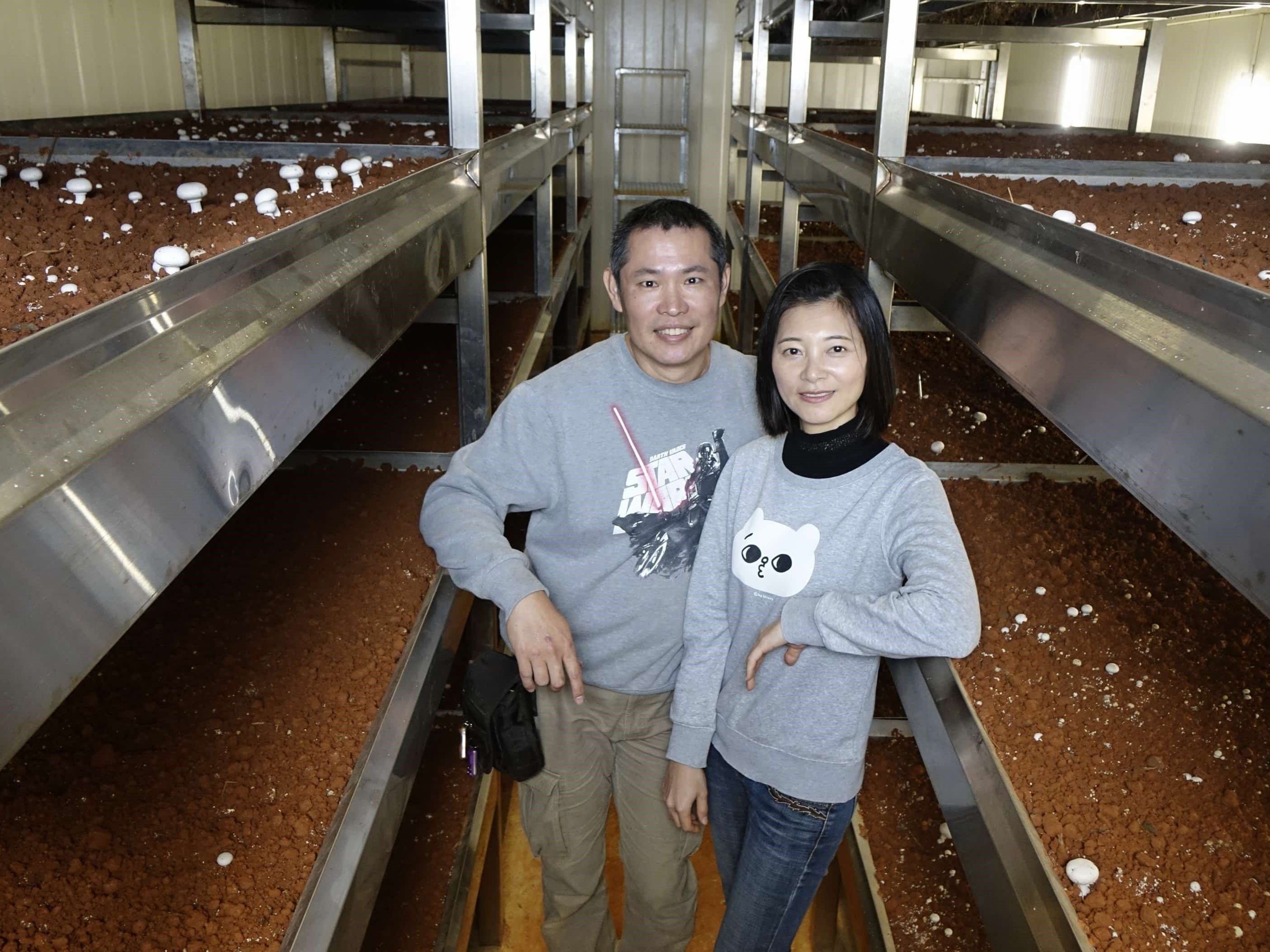 「以前我每天平均講話時間超過8小時,現在每天面對洋菇、土壤,不需要隻字片語,心情卻很愉快。」畢業後,擔任教科書出版社業務的鄭玉豐坦言,雖然業務收入不錯,但在少子化的與競爭激烈的雙重夾擊下,他擔心可能遭遇中年失業問題。剛巧家中在大溪有空地,而岳父母家栽種秀珍菇,於是興起當小農的念頭,幾經評估他決定朝種洋菇發展。