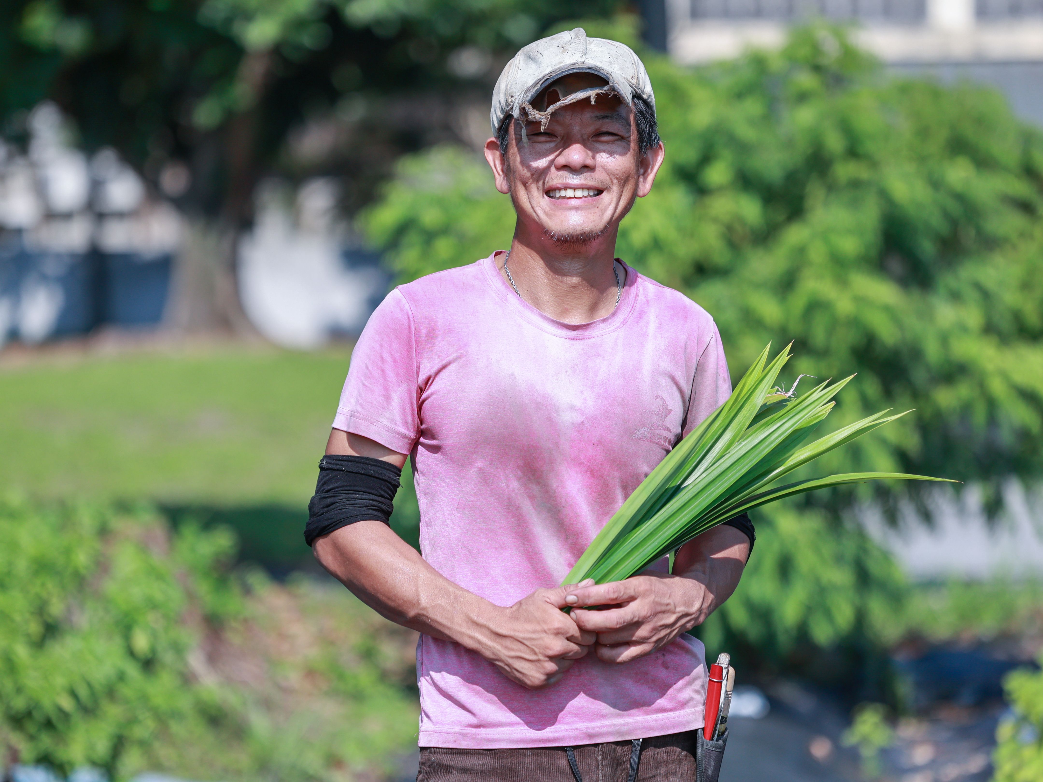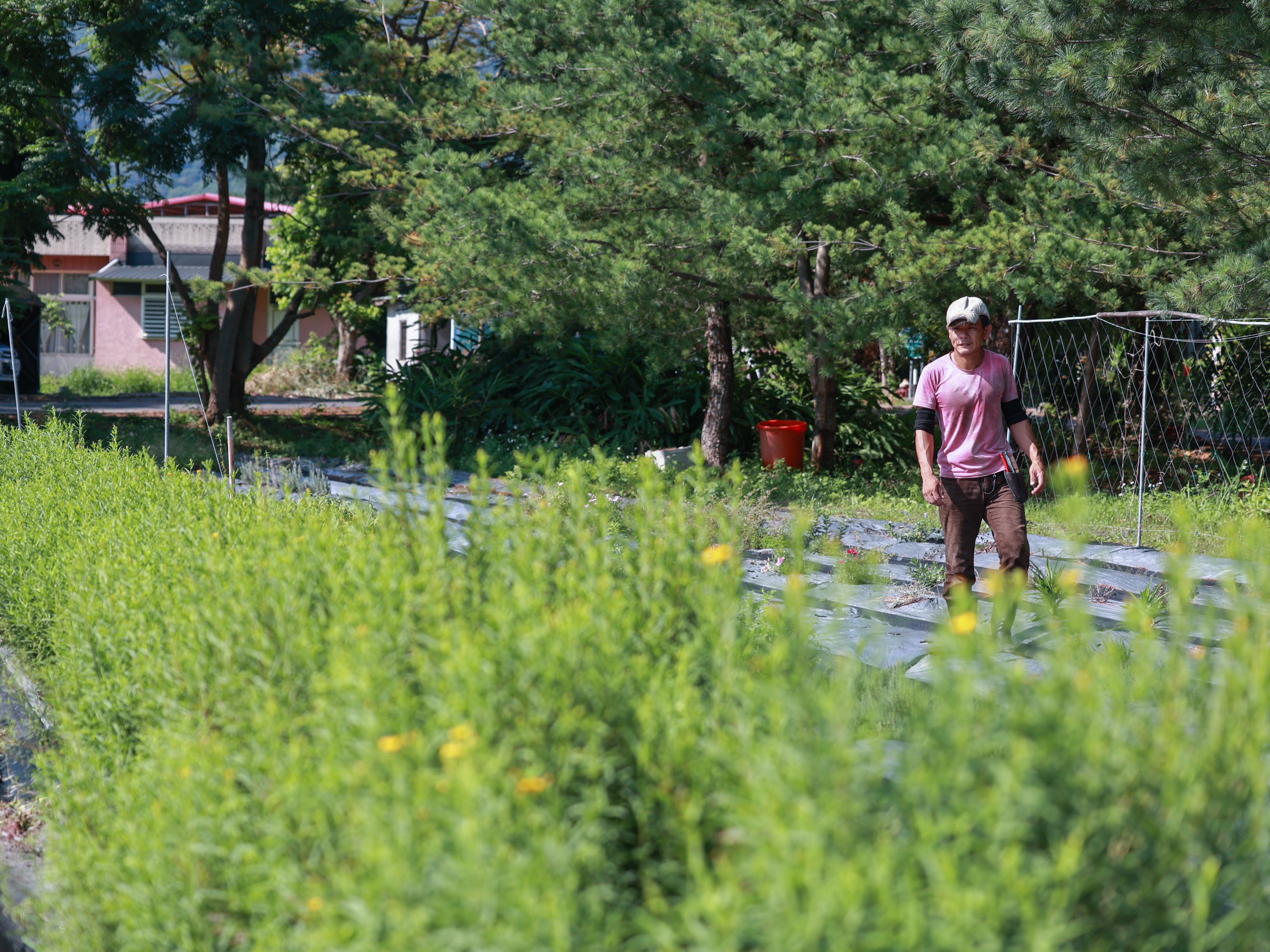 來到位於吉安干城村的香草花田,禾亮家的男主人黃嘉襄帶著我們參觀香草田邊走邊說:「花蓮的夏季氣候炎熱,不利於香草生長,所以田裡感覺一片荒蕪。還好有些已經馴化適應花蓮濕熱的天氣,例如打拋葉、香茅等,但夏天確實不利於香草生長。」黃嘉襄表示,香草可略分為涼、熱兩種不同特性。在這片田裡,有東南亞的香料與來自歐洲的薰衣草、蘿勒、洋柑橘等,他希望不管任何季節,遊客都能見到不同的香草植物。
