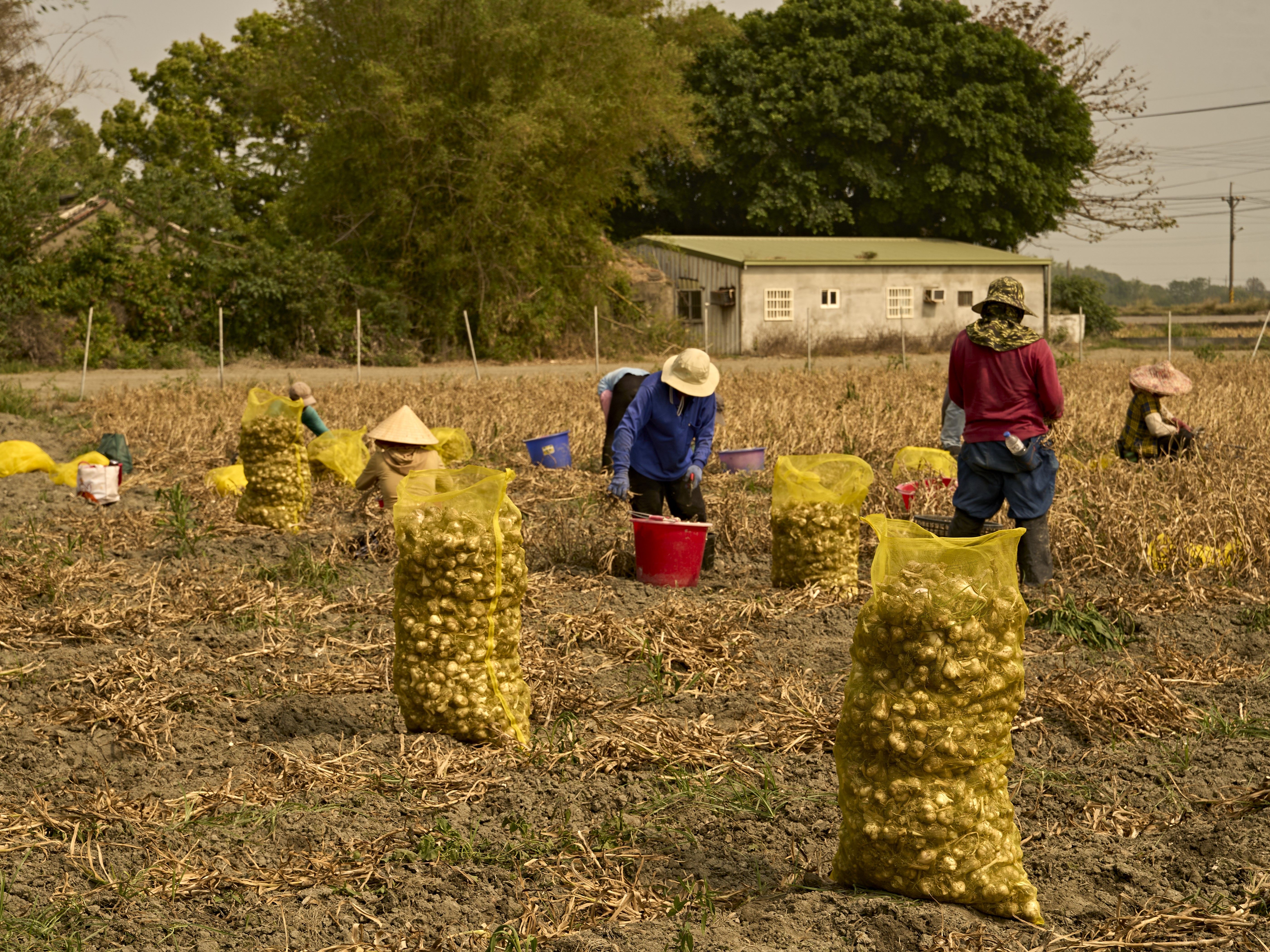 目前栽種面積廣達25公頃,每年9月開始 種植,4月準備採收;因蒜頭形狀不一,為確保能有最佳品質,過程中需要龐大人力細心照顧。「不只是採收辛苦,整理蒜頭和蒜米表皮時,都需要經驗豐富的師傅才行,光是人力訓練就非常耗時費工!」吳宗翰已練得一身精壯,農忙時和夥伴齊心 投入生產作業,一袋袋沉重蒜頭搬進搬出,只為努力做好這份阿公傳給他的事業。