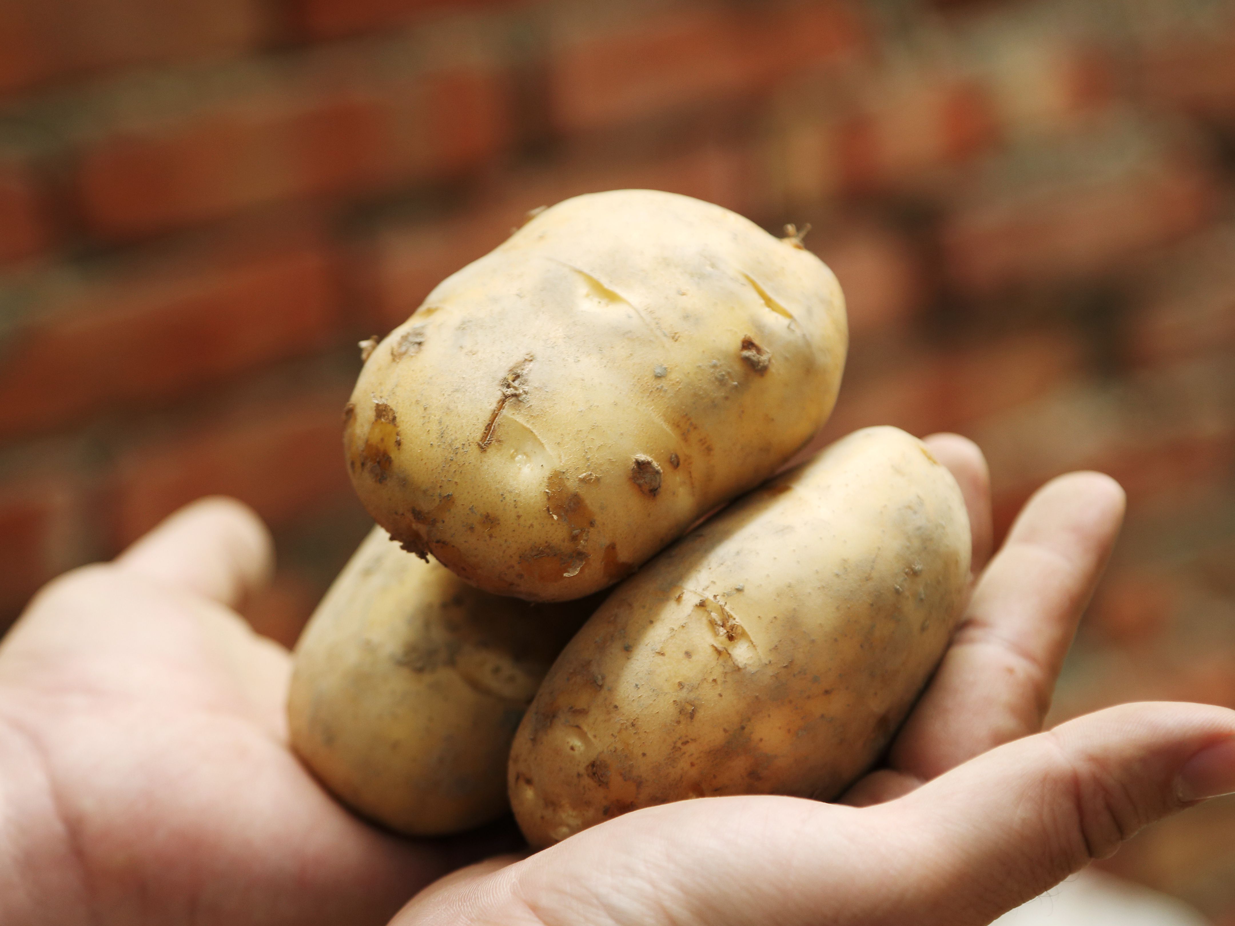 根莖作物要長得好,和土壤的有機質有關,馬鈴薯也是一樣。李毓城說,有機質豐富的土壤顏色趨近黑色,能增加土壤的蓬鬆度,並促進馬鈴薯根部的吸收,田間管理只要能做到維持這樣的健康土壤,就能種出營養完整且品質穩定的馬鈴薯。 一般盤商都是收購大顆的馬鈴薯,中小型的往往較不受歡迎,理由是大顆的削皮比較省事!全聯的客群以小家庭為主,中小型馬鈴薯相對適合且受到消費者喜愛,在一個機緣下,全聯到嘉義舉辦農家直採說明會,李毓城得知全聯農家直採專區可以讓農友的優良農產品自己訂價販賣,不僅有照顧農民的美意,同時也解決了小型馬鈴薯銷售問題。