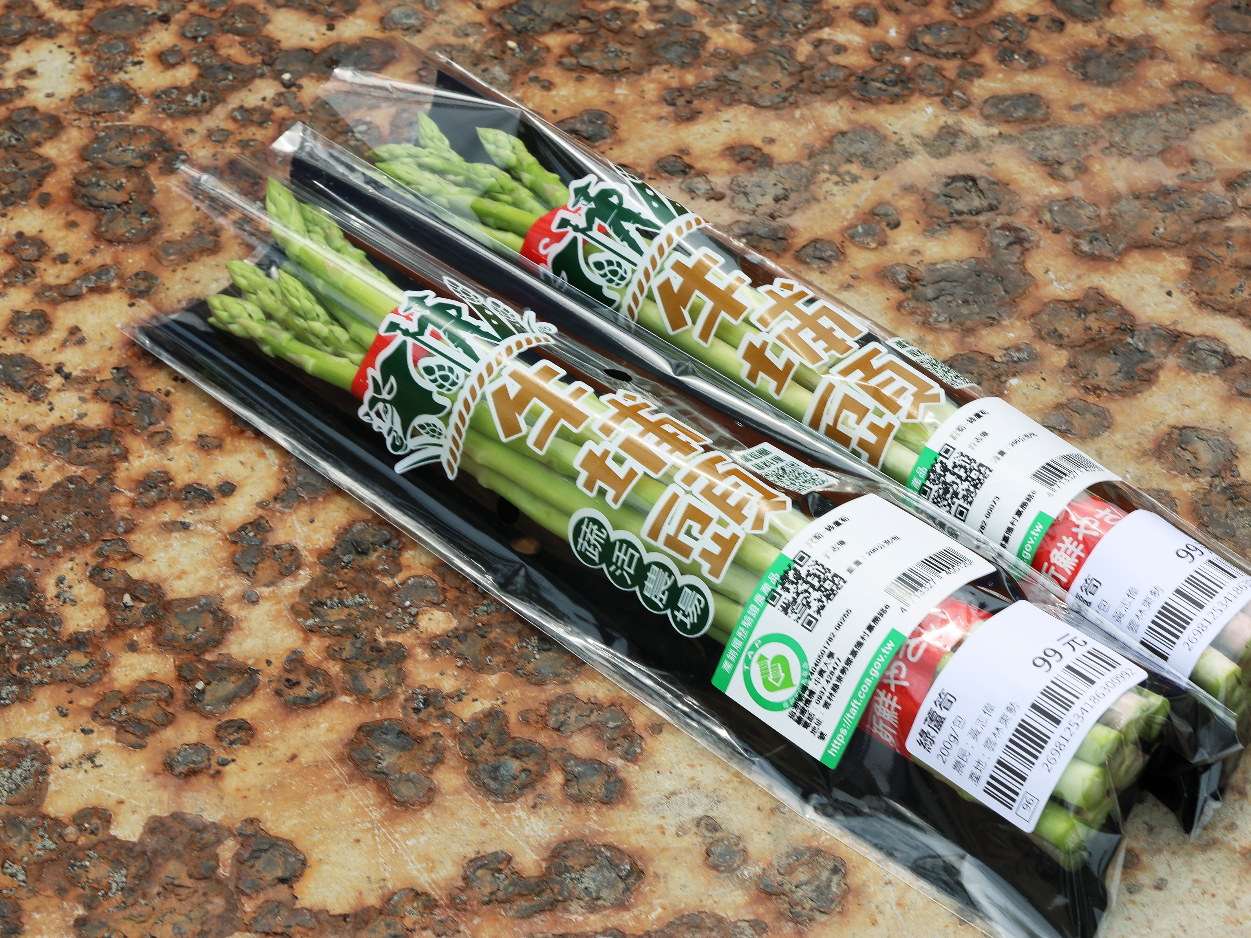 雖然「滴灌法」的成本較高,馬達、滴灌管、過濾設備等器材所費不貲,但是透過科技與機器輔助,不僅能讓農作事半功倍,還能帶來更好的商品品質,黃志偉認為這一切都是值得的。 拿起牛埔頭蔬活農場的綠蘆筍,每袋包裝上都有「產銷履歷驗證農產品」的標籤,只要掃瞄上面的QR Code,從產地、包裝日期,到耕地、施肥、採收整個詳細的生產紀錄都一目了然,甚至還有蘆筍炒肉絲、翡翠蝦等數道料理食譜可以參考。