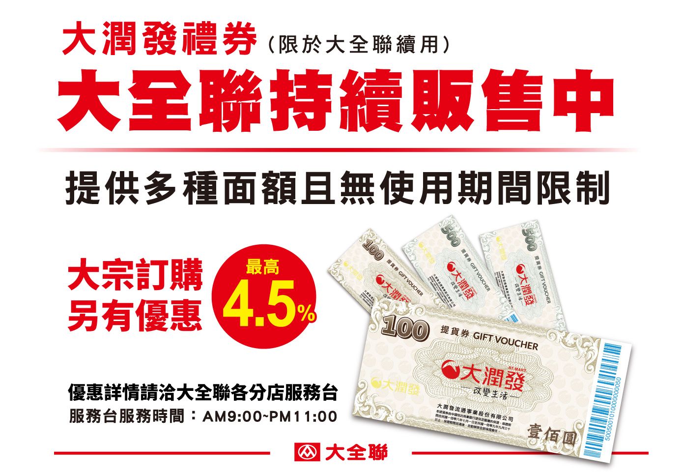 大潤發禮券 大全聯持續販售中