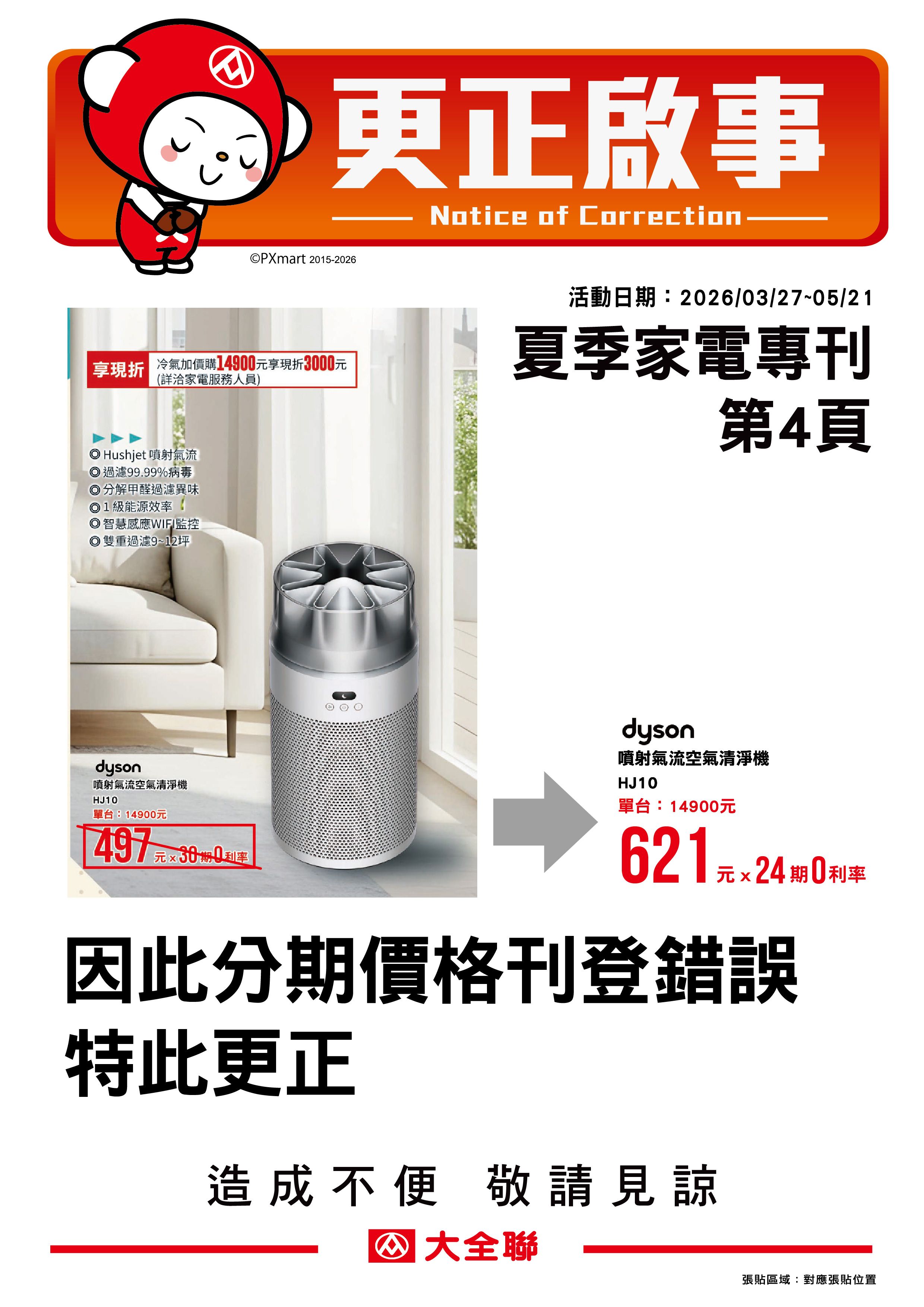 大全聯夏季電器專刊_更正啟事